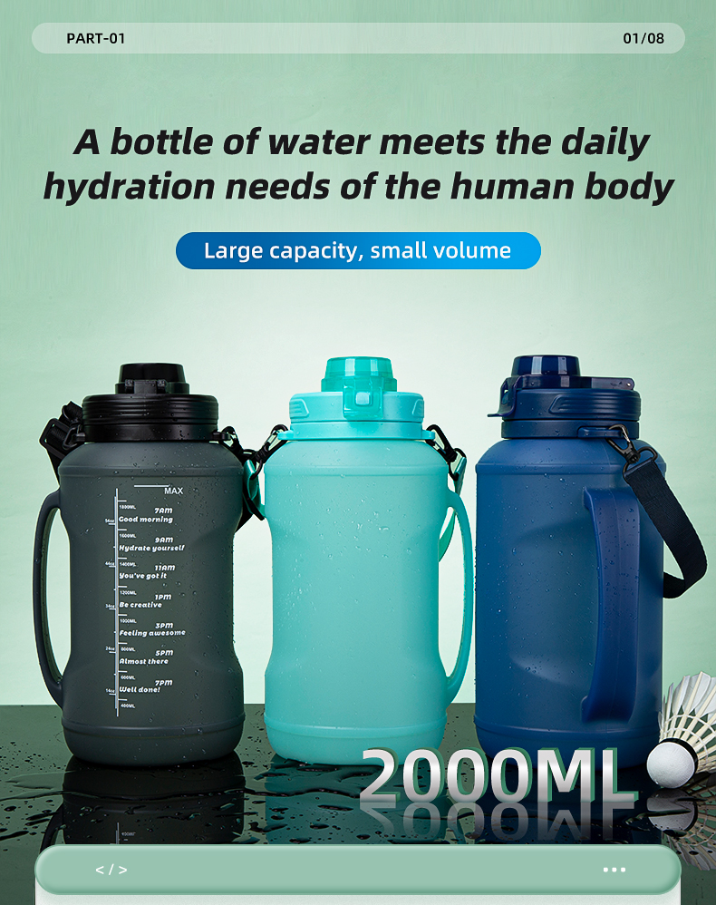 2.0L large capacity silicone folding kettle – your perfect drinking companion In modern life, maintaining sufficient water intake is crucial. Our 2.0L large capacity silicone folding kettle, with its innovative design and high-quality materials, has become your ideal choice for daily drinking water. This kettle is made of food grade silicone, PP, webbing, and 304 stainless steel material to ensure safety, durability, and health. Whether it’s for sports, travel, or daily use, it can easily meet your needs. Large capacity design This kettle has a capacity of 2 liters, enough to provide you with the water you need for a day, avoiding the hassle of frequent refilling. Whether in the gym, office, or outdoor activities, you can easily carry this kettle and stay hydrated. Convenient cleaning and leak proof design The diameter of the kettle is 72.5mm wide, making it easy to clean. At the same time, the kettle mouth adopts a spiral pattern design, effectively preventing leakage. Equipped with multiple leak prevention measures, including silicone gaskets and bottle mouth clasps, to ensure no water leakage when inverted, providing you with a more reassuring user experience. Intelligent drinking water reminder The scale design on the pot body clearly indicates the time and capacity, reminding you to drink water on time and helping you develop good drinking habits. Whether at work or on outdoor adventures, you can easily control your daily water intake to ensure good health. Free choice of drinking water method This kettle offers two drinking options: straw and direct drinking, allowing you to choose according to the needs of different occasions. Whether you are walking or resting quietly, you can enjoy a convenient drinking experience. Multiple color options available Our water bottles are available in indigo, black, snow blue, and pink to meet the personalized needs of different users. The combination of fashionable appearance and practical design allows you to showcase your unique style while drinking water. Lightweight and easy to carry The folded size is only 177mm x 125mm x 122mm, and before folding it is 138.5mm x 121.5mm x 259mm, weighing only 319 grams. It comes with straps for easy carrying when traveling, hiking, or daily travel. epilogue In short, the 2.0L large capacity silicone folding kettle is a drinking tool that combines aesthetics, practicality, and safety. Whether you are a sports enthusiast, travel expert, or daily worker, it will be your best choice for staying hydrated. Buy now and make healthy drinking water easier!