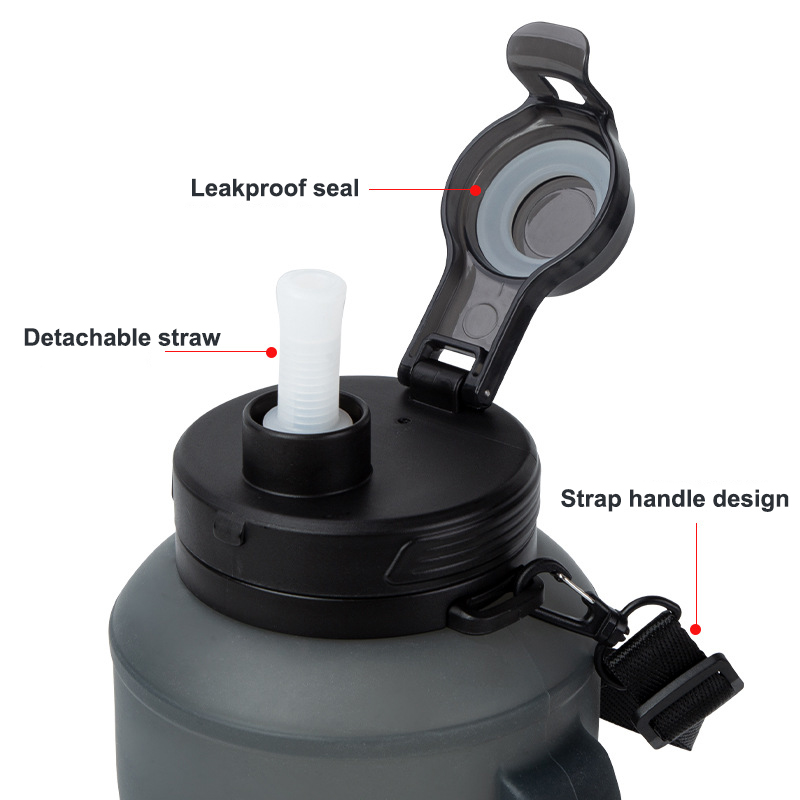 Wholesale 2L Sport Gym Travel Collapsible Drinking Foldable Silicone Water Bottle Straw With Handle