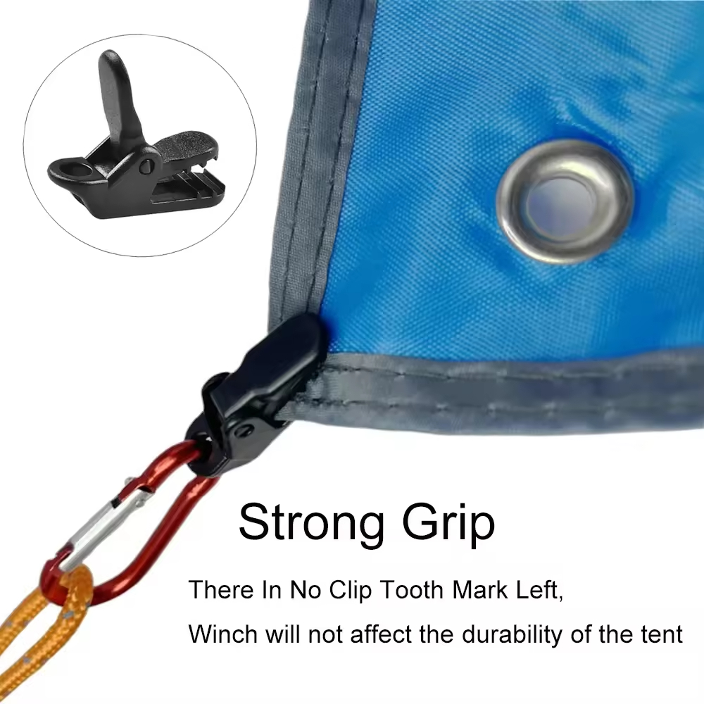 These plastic tent clips are perfect for camping beginners – compact yet effective for quickly securing tents and canopies.