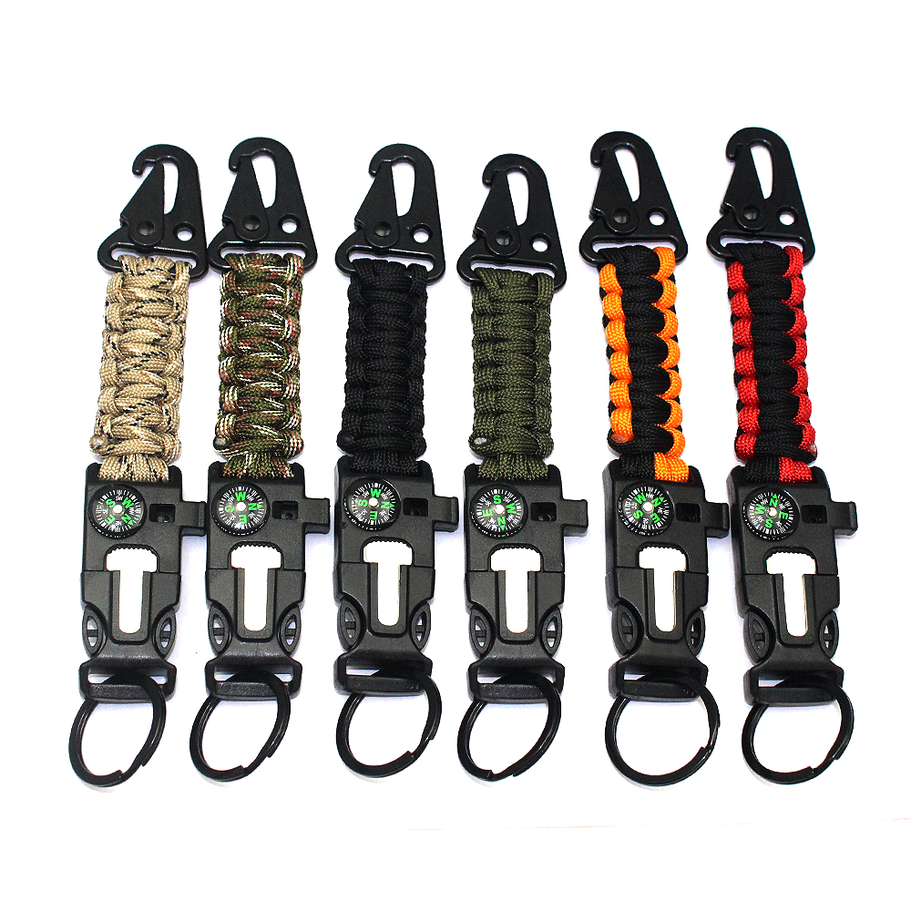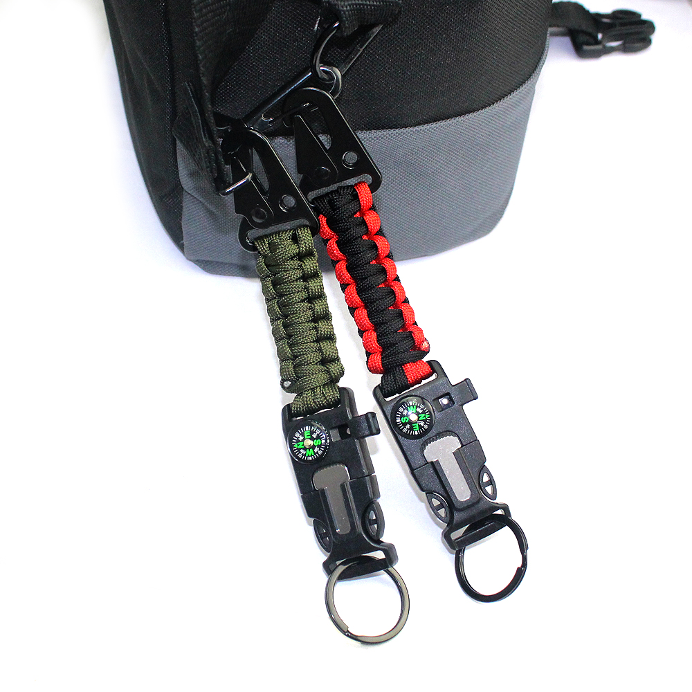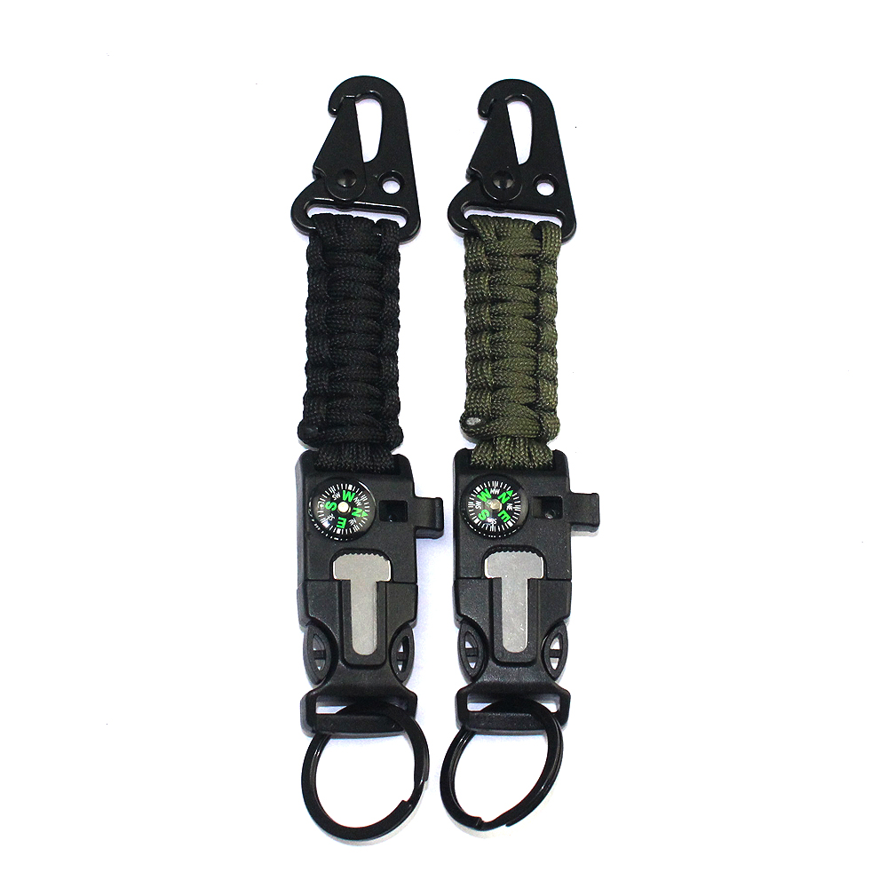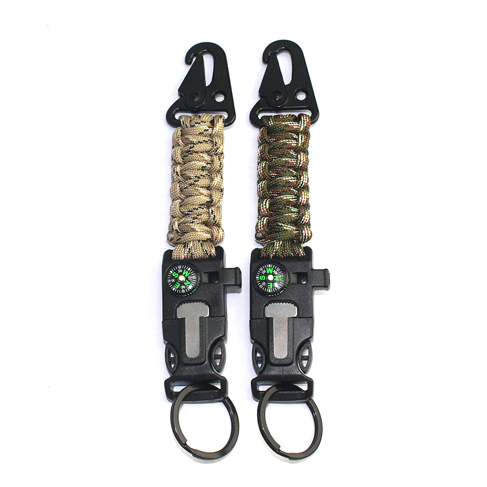 Product Description Hawkbeak Paracord Braided Keychain – Combining practicality with innovative design, it provides comprehensive support and protection for your outdoor adventures. This keychain is not only a safe container for daily keys, but also a fully functional survival tool suitable for all kinds of outdoor activities, travel and emergency situations. Versatile Design: This keychain is woven with high-strength paracord, combining the durability and convenience of the hawkbeak. The paracord not only has good tensile strength, but can also be untied and used when needed to provide additional survival support. The design of the hawkbeak makes the keychain more secure and reliable, ensuring that your belongings are safe and worry-free. Emergency Whistle: The high-volume whistle equipped with the keychain can make a loud sound in an emergency, helping you to attract attention when you need rescue. Whether you are lost, in distress, or need to attract the attention of others, this whistle can provide reliable help. Accurate Compass: The built-in compass ensures that you do not lose your way during outdoor activities. Its precise pointing function helps you find the right direction in forests, mountains or any unfamiliar environment, avoiding the danger caused by disorientation. Fire stick function: This keychain also comes with an efficient fire stick, which allows you to quickly ignite a fire. Whether it is to keep warm in cold weather or to make a fire to cook in the wild, this fire stick can play an important role at critical moments to ensure your safety and comfort in outdoor activities. Multi-scenario application: This multi-functional paracord braided keychain is very suitable for outdoor activities such as camping, hiking, mountaineering, and is also an indispensable equipment in emergency kits. Its design is both practical and compact, and it can be easily hung on a keychain, backpack or belt to provide help anytime and anywhere. Durable and convenient: The materials of the paracord and hawkbill buckle make this keychain very durable and not easy to wear. Its design takes into account the convenience of use, allowing you to quickly obtain tools when needed, and improve the safety and comfort of outdoor activities. In short, this hawkbill buckle paracord braided keychain provides a practical solution for your outdoor adventures and daily life with its versatile design and high-quality production. Whether it is used as a personal use or as a gift to outdoor enthusiasts, it is an ideal choice. With it, every adventure of yours will be more worry-free.
