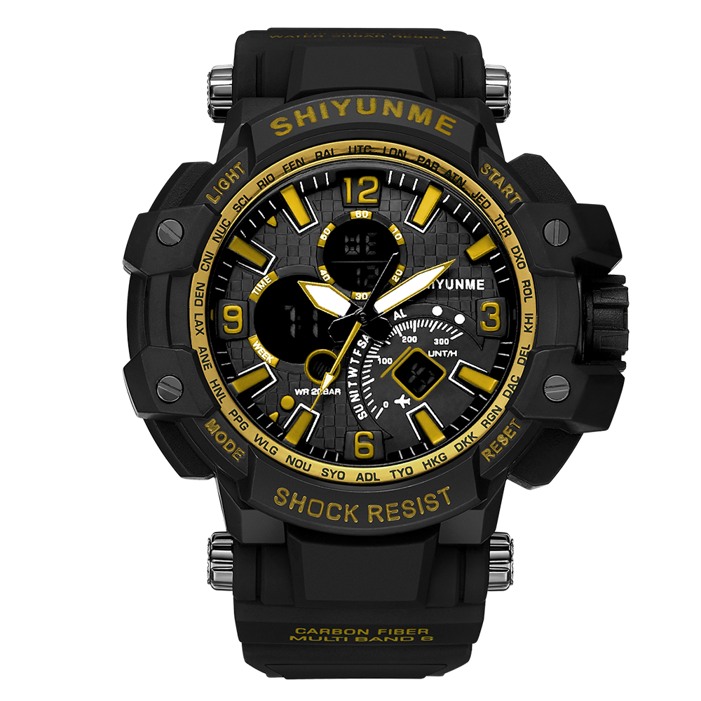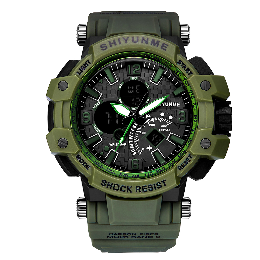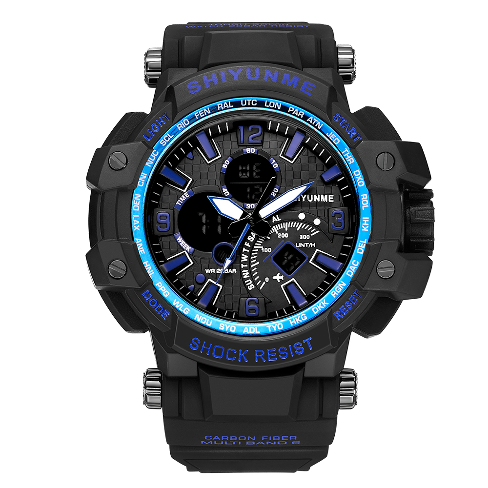 Feature:Chronograph, Complete Calendar, Day/Date, DIVER, Multiple Time Zone, Water Resistant, Waterproof , LED Display, Luminous, Stop Watch Band Material Type:Plastic Case Material:Plastic Band Length:24cm Clasp Type:Buckle Water Resistance Depth:30bar Type:CHARM, Fashion, Limited Edition, Sport User:Unisex Dial Diameter:25MM Band Width:18MM