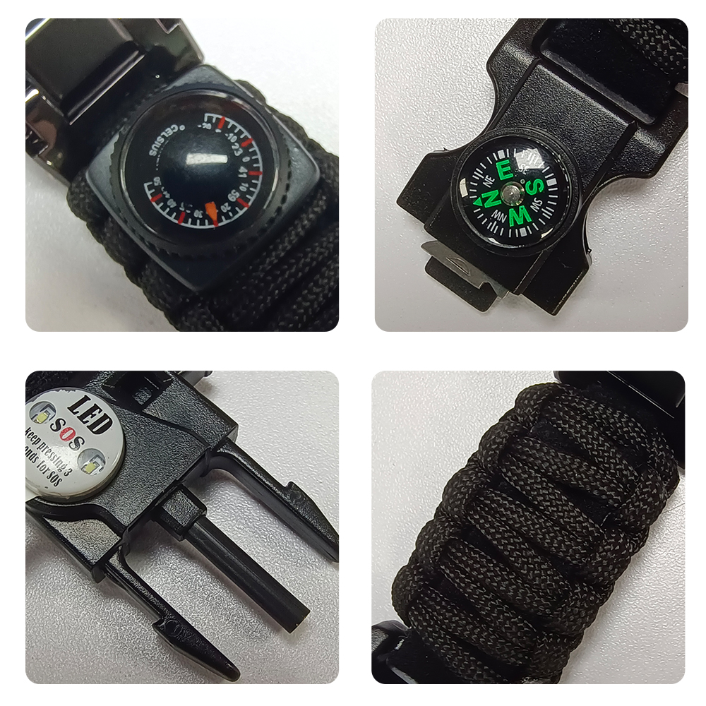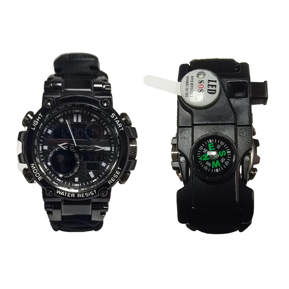 The Multifunctional Survival Watch is an indispensable companion for outdoor enthusiasts, adventurers, and anyone who seeks reliable support in challenging environments. Whether you’re exploring rugged mountains, trekking through dense jungles, or simply facing the unpredictable forces of nature, this watch seamlessly combines sophisticated technology and practical features to ensure your safety and preparedness. Designed with durability and functionality in mind, the watch excels in extreme conditions, providing essential tools that could make the difference in survival situations. It includes an emergency whistle that emits a loud, clear signal to attract attention during critical moments, an accurate compass to help you navigate through foggy or complex terrain, and a versatile screwdriver that integrates multiple heads for quick fixes or equipment adjustments. Additionally, the built-in thermometer allows you to monitor ambient temperature changes, helping you prepare for weather shifts and maintain comfort, while the multifunctional scraper can be used for scraping frost, cleaning impurities, or acting as a general-purpose tool. The watch’s waterproof design ensures it remains fully functional even in heavy rain or underwater, making it highly reliable in all weather conditions. Its long-lasting battery ensures you can depend on it for extended periods, and the adjustable strap ensures it fits a variety of wrist sizes. Ideal for a wide range of activities, including hiking, mountaineering, camping, skiing, rock climbing, cycling, and emergency rescue, the watch is not just a tool but a life-saving device in critical situations. It provides essential support in wilderness exploration, helps travelers find their way in unfamiliar areas, and ensures that you’re always prepared for unforeseen challenges. Its practicality also makes it an excellent everyday accessory, offering convenience and functionality for daily use. The Multifunctional Survival Watch is a versatile, high-performance tool that combines the reliability of a smartwatch with the ruggedness required for extreme outdoor adventures, ensuring you can face any situation with confidence and ease.