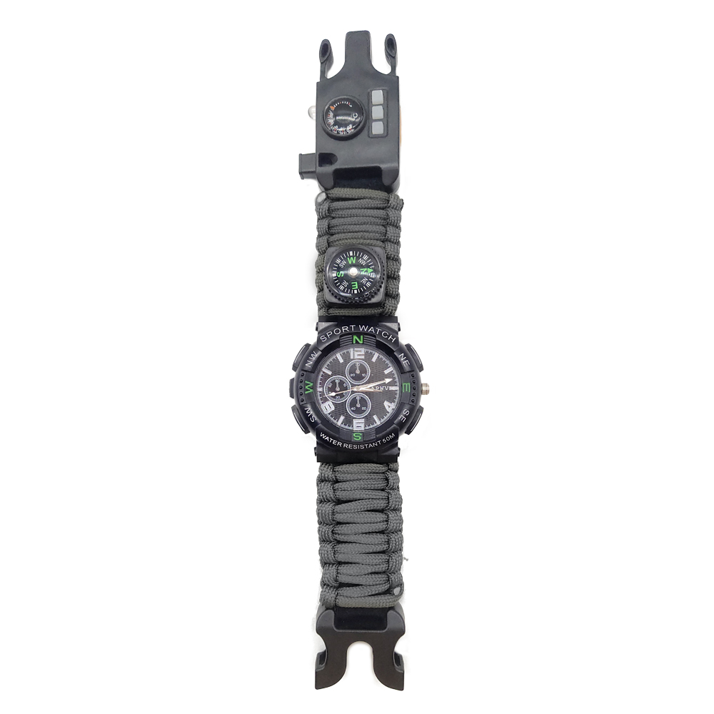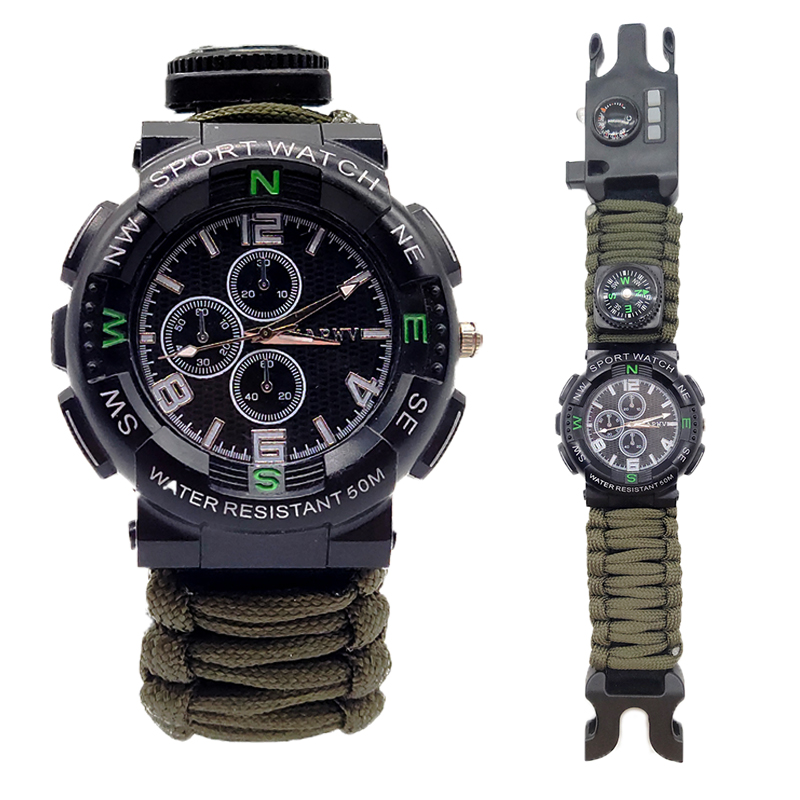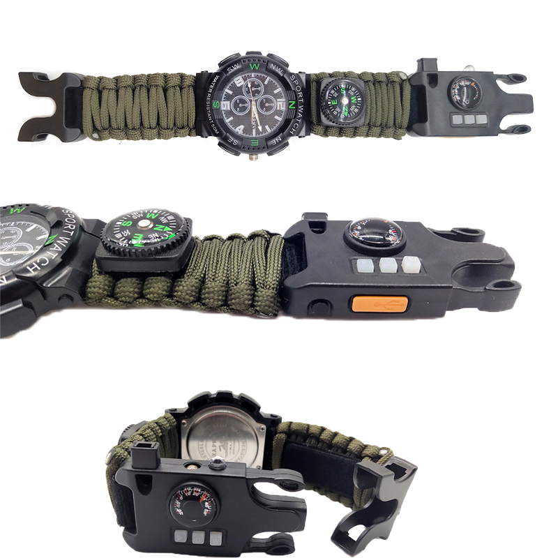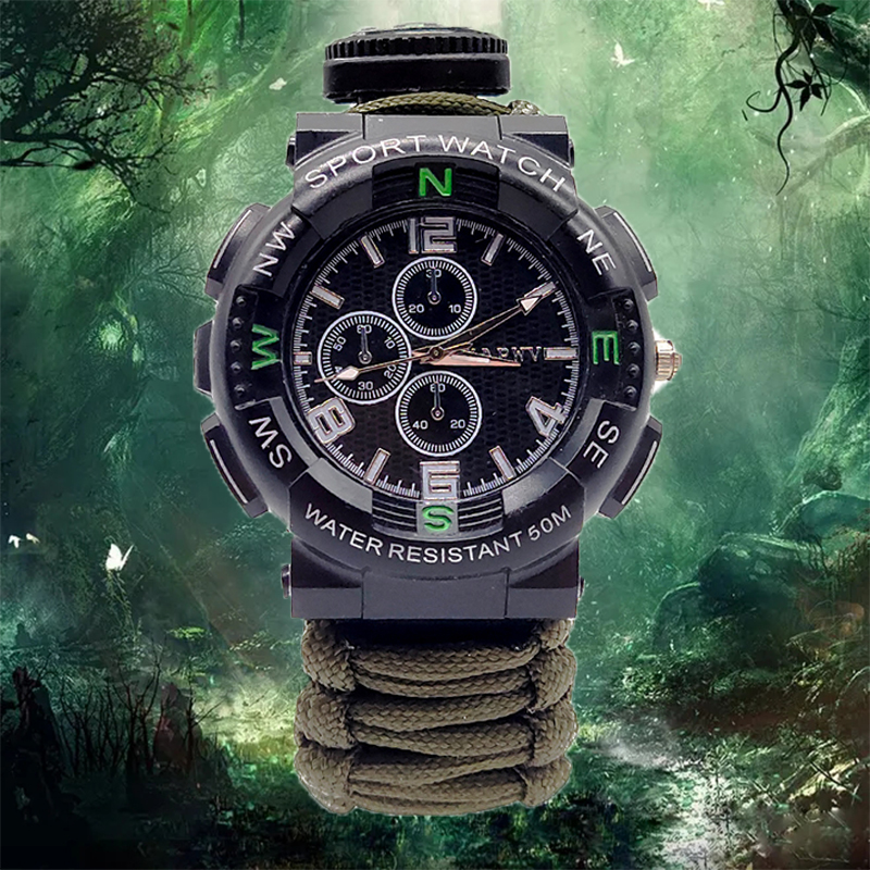 5. Paracord: The integrated paracord not only increases the durability of the watch, but also can be used as a survival tool in emergencies, such as building a temporary shelter or fixing items.