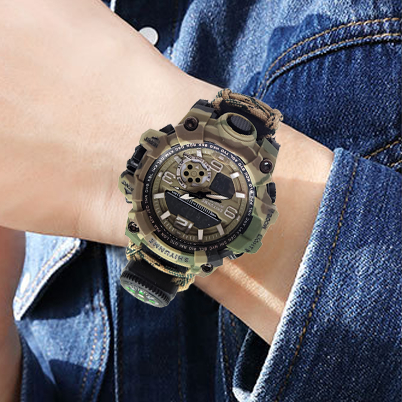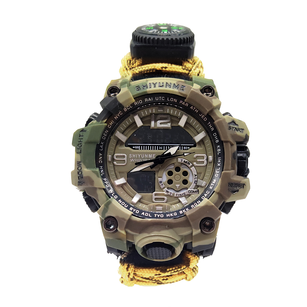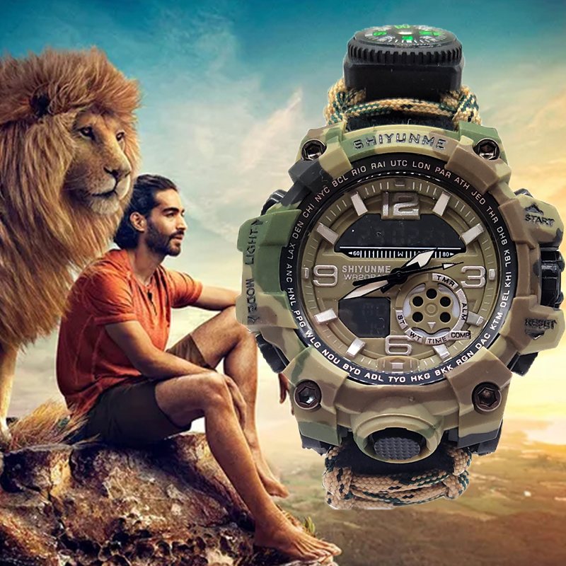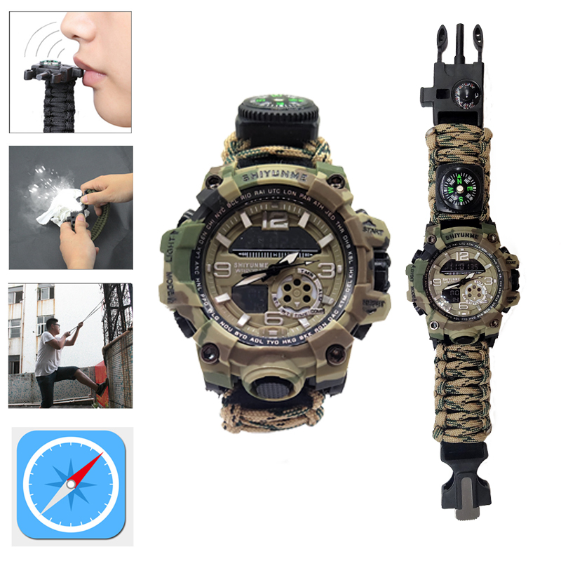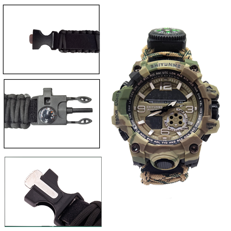 The Multifunctional Outdoor Equipment Emergency Survival Bracelet Watch is an all-in-one tool designed to enhance your outdoor adventure experience. Combining the functionality of both a bracelet and a watch, its innovative two-in-one design offers convenience and practicality, making it an indispensable companion for outdoor activities. The built-in high-decibel whistle is a lifesaver in emergencies, allowing you to signal for help or draw attention in times of crisis. Additionally, it comes equipped with a fire starter, enabling you to quickly light a campfire or emergency fire source to meet your heating or cooking needs while in the wild. The multifunctional scraper adds further versatility to the watch, perfect for tasks such as cutting, scraping, or other survival-related activities, ensuring you have the right tools for a variety of situations. With an integrated compass, the bracelet watch helps you stay on track and navigate accurately, reducing the risk of getting lost during field exploration or hiking. The high-strength materials used in the construction of both the bracelet and the watch ensure their durability, standing up to harsh environmental conditions and offering long-term reliability. It also features waterproof capabilities, making it adaptable to various weather conditions and ensuring its functionality even in wet environments. The luminous display makes reading the time easy, even in the dark, which is particularly useful for nighttime activities or in low-light conditions. Whether you’re exploring the great outdoors, camping, hiking, or engaged in tactical training, this survival bracelet watch is the ultimate tool to increase safety, convenience, and preparedness in any situation. It is also invaluable in emergencies, with quick-access features like the whistle and fire starter, ensuring you can respond swiftly when every second counts.