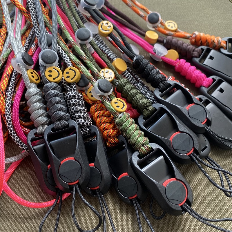 The paracord necklace mobile phone lanyard is a multifunctional accessory that combines practicality with aesthetics, making it both a protective and decorative item for mobile phone users. Made from high-strength nylon fibers, the paracord offers exceptional durability and wear resistance, ensuring it can withstand tension and rough conditions better than regular materials. Its water resistance and UV protection further enhance its performance, making it reliable in various environmental conditions. The lanyard allows users to easily hang their mobile phones around their neck or wrist, reducing the risk of losing or dropping the device, which is especially useful during outdoor activities, travel, or daily routines. In addition to its main function of securing a phone, the paracord is versatile in emergencies. It can be disassembled and used for first aid bandaging, creating temporary ropes, or even fixing items, adding a layer of preparedness for unexpected situations. The design of these lanyards often features a variety of colors and braiding styles, offering customization options to suit individual tastes and preferences. Some manufacturers even provide personalized services, allowing users to choose colors, lengths, and styles based on their needs. Using the lanyard is simple—just connect it through the hanging holes of the phone case or attach it to the special buckle of the lanyard, ensuring it’s securely fixed. The adjustable length feature ensures comfortable wear, whether around the neck or wrist. Regular maintenance is also important to keep the paracord in good condition, requiring occasional cleaning with mild detergent and water, and ensuring it’s not exposed to excessive sunlight to prevent fading. In conclusion, the paracord necklace mobile phone lanyard is a functional and stylish accessory that not only helps secure your phone but also provides valuable utility in emergencies, making it an ideal choice for those who enjoy outdoor activities or need a practical, stylish solution for everyday use.