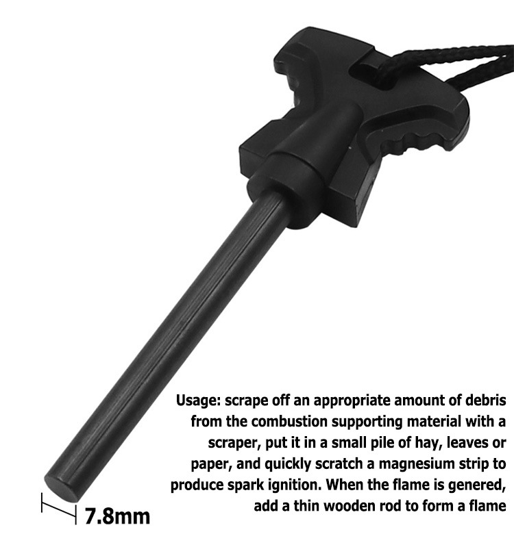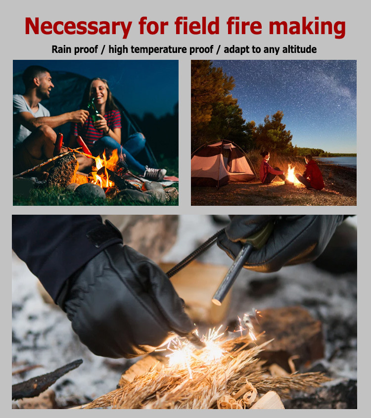 A magnesium fire rod is a tool used to start a fire, typically for camping, hiking, or emergency situations. The usage method of magnesium fire rod is as follows: