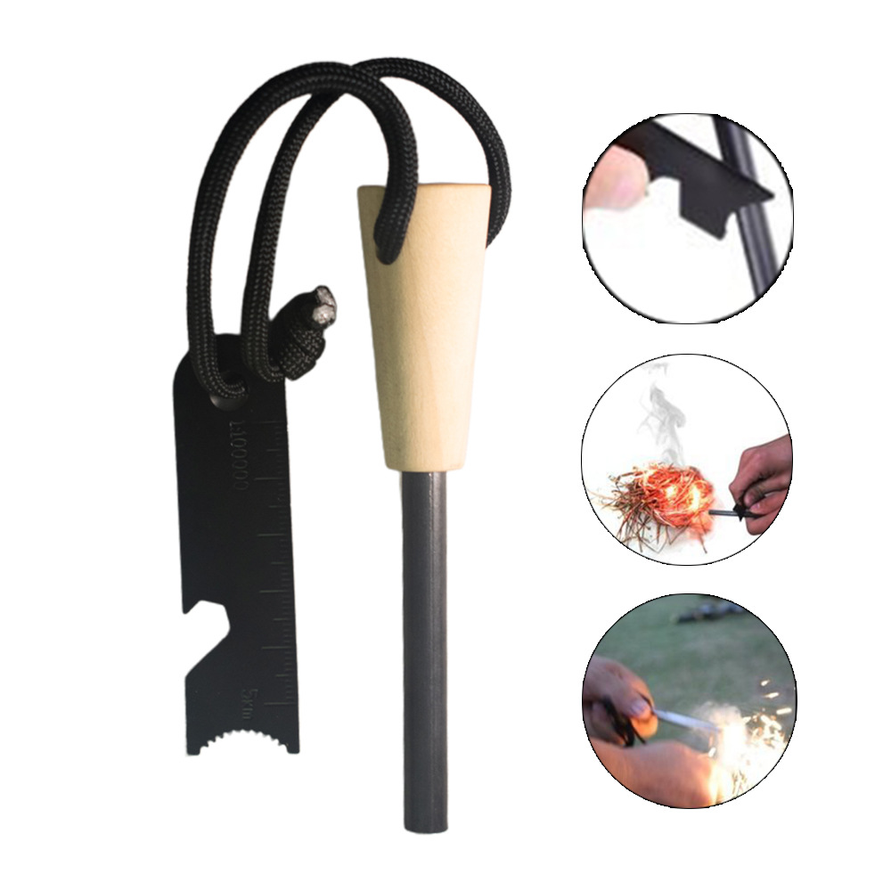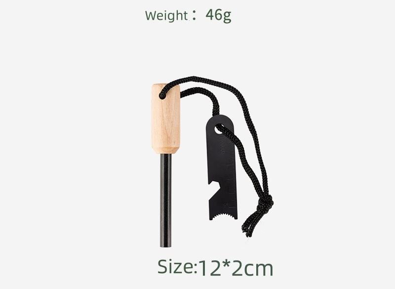 Product Name: Compass Fire Stick Product Description: Compass Fire Stick is a multi-purpose outdoor tool that combines the functions of a compass and a fire stick, designed for adventure enthusiasts, climbers, campers and survival enthusiasts. It not only provides a fire source when you need to make a fire, but also helps you determine your direction when you are lost, helping you to safely cope with various outdoor challenges. Main Features: Comprehensive Functions: Fire Stick: Built-in efficient fire stick, which can produce powerful sparks to help quickly ignite firewood, charcoal or other fuels, ensuring that you can successfully make a fire in cold or wet environments. Compass: Integrated precise compass with clear direction indication function to help you determine the direction and prevent getting lost, especially suitable for complex outdoor environments. High Durability: Durable Material: The shell of the fire stick is made of high-strength aluminum alloy or wear-resistant plastic, which is sturdy and durable and adaptable to various harsh environments. Waterproof Design: Equipped with a waterproof closure design to ensure that the compass and fire stick can still be used normally in a humid environment.